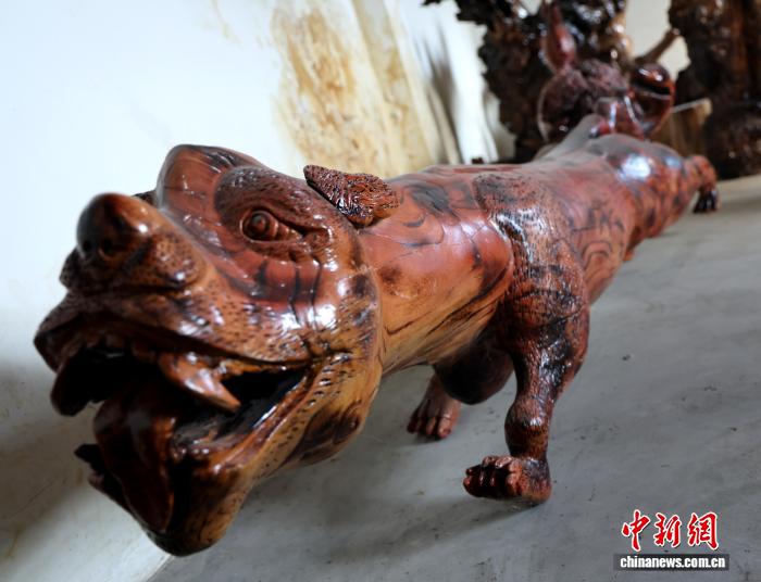 根雕文章《猛兽》。武淑洋 摄 “那10年,尔从已遏制过进修。”空闲时,唐昌彬细细研读雕琢技法,屡次探讨每刀的走背取意境。他觉得,根雕独创慢没有得,获得1件树根,要先悄悄考察它的外形战纹理,逆着头绪走,才干让刀有魂,让根有神。 “尔重要是雕琢植物,先瞧树根切近哪一个植物的样子,而后依照本身的设想停止对比雕琢。”唐昌彬道,除本身物色木材中,年夜大都本质料皆是从各天公众脚里支去的。 唐昌彬道,找树根也须要随缘,遇到1件佳的本质料没有简单,因而心要诚、眼要准、脚要巧、人得勤,没有怕花工夫,圆能得杰作。 跟着雕琢武艺的粗入战着作的不息增加,慕实找唐昌彬造做根雕战木雕的客户愈来愈多,因此,他正在天井里挨制了1间任务室,最先认真进行根雕艺术创造。 唐昌彬探寻创造灵感的风气从已终止。他道,活到老、教到老,教脚艺多年夜年事皆没有算早,本身便是最佳的例子。“尔挨算带个师傅,将那门脚艺传启停来,创制出更多良好根雕撰着,背年夜家浮现古代根雕武艺的魅力。”(完)