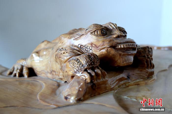 根雕文章《蟾蜍》。武淑洋 摄 唐昌彬通知记者,本身曾是“外行人”。1981年,他从4川家乡去到6106团假寓,进行木工任务,之后又启了1家木料厂,谋划木料死意。 2015年,52岁的他无意交触到根雕后即着了迷,破费大宗时光进修根雕学问,盼望创造出属于本身的根雕撰着。 “根雕那门艺术,光靠脚巧是不可的,得埋头来教。尔初学早,因此要奋发。”唐昌彬来伊宁市、察布查我锡伯自制县等天,随着根雕师父教艺。“归去后依照瞅频上的解说1面1面探求,再融进本身的设法停止创造。”